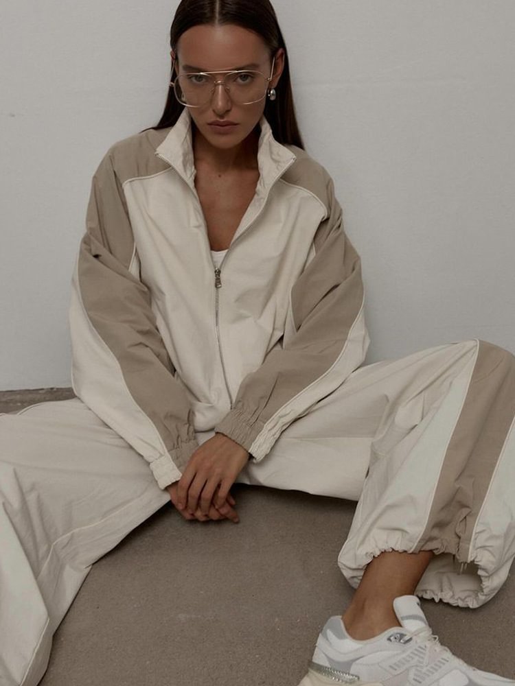 AliExpress Cross-border New Casual Fashion Contrast Drawstring Sports Jacket Pants suit European and American Two-piece Set