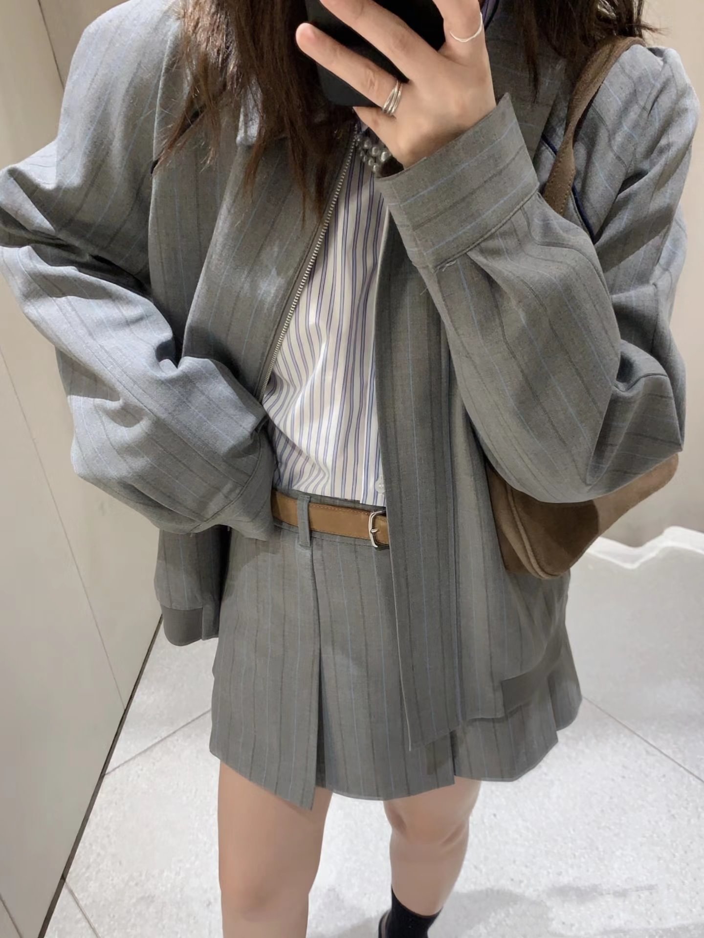 Foreign trade wholesale 2025 spring ZA series striped lapel loose casual bomber jacket coat