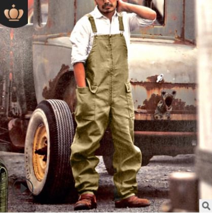 Cross-Border Men's Clothing New Four-Season Pure Color Loose Straight Workwear Casual Overalls